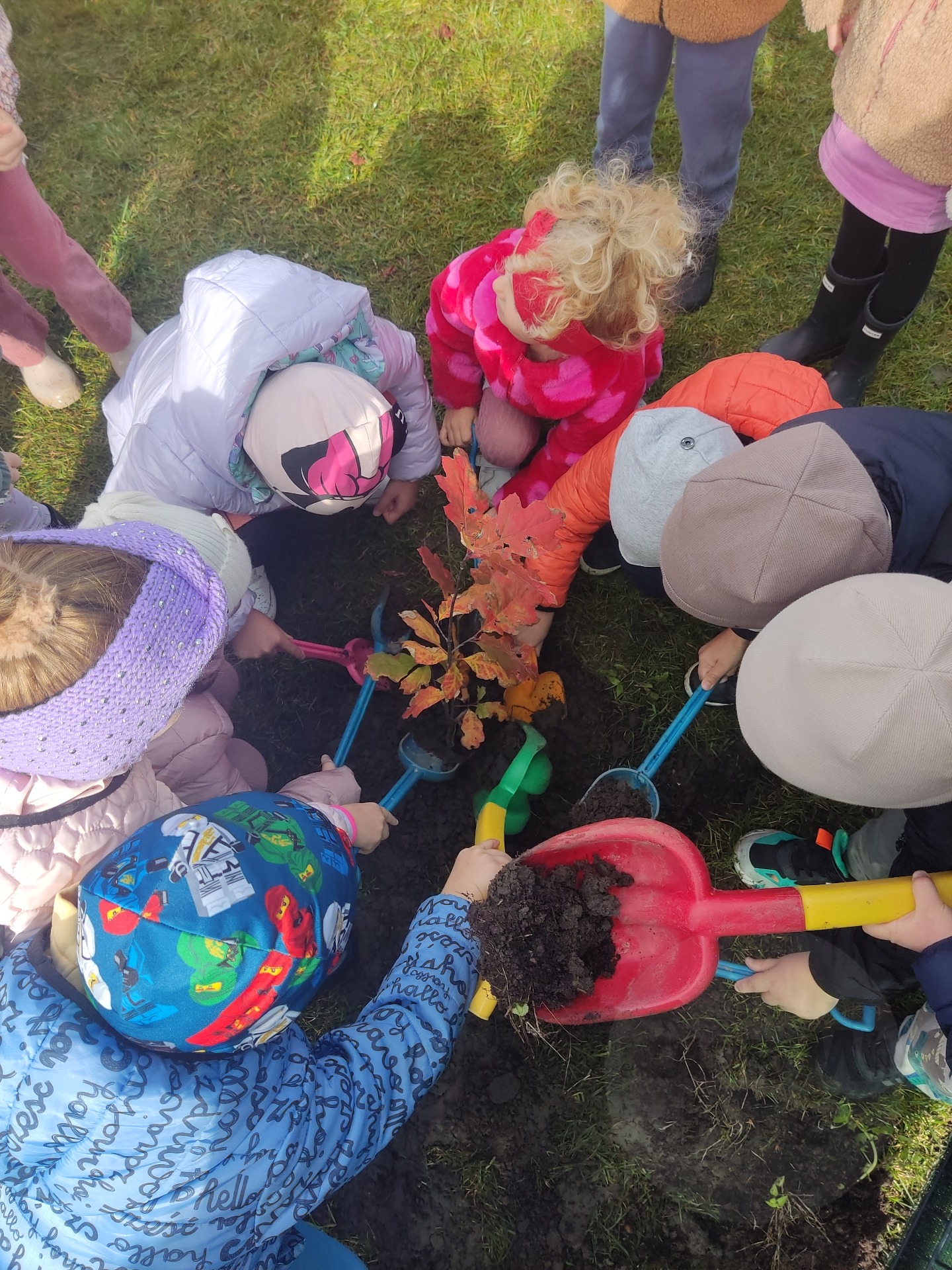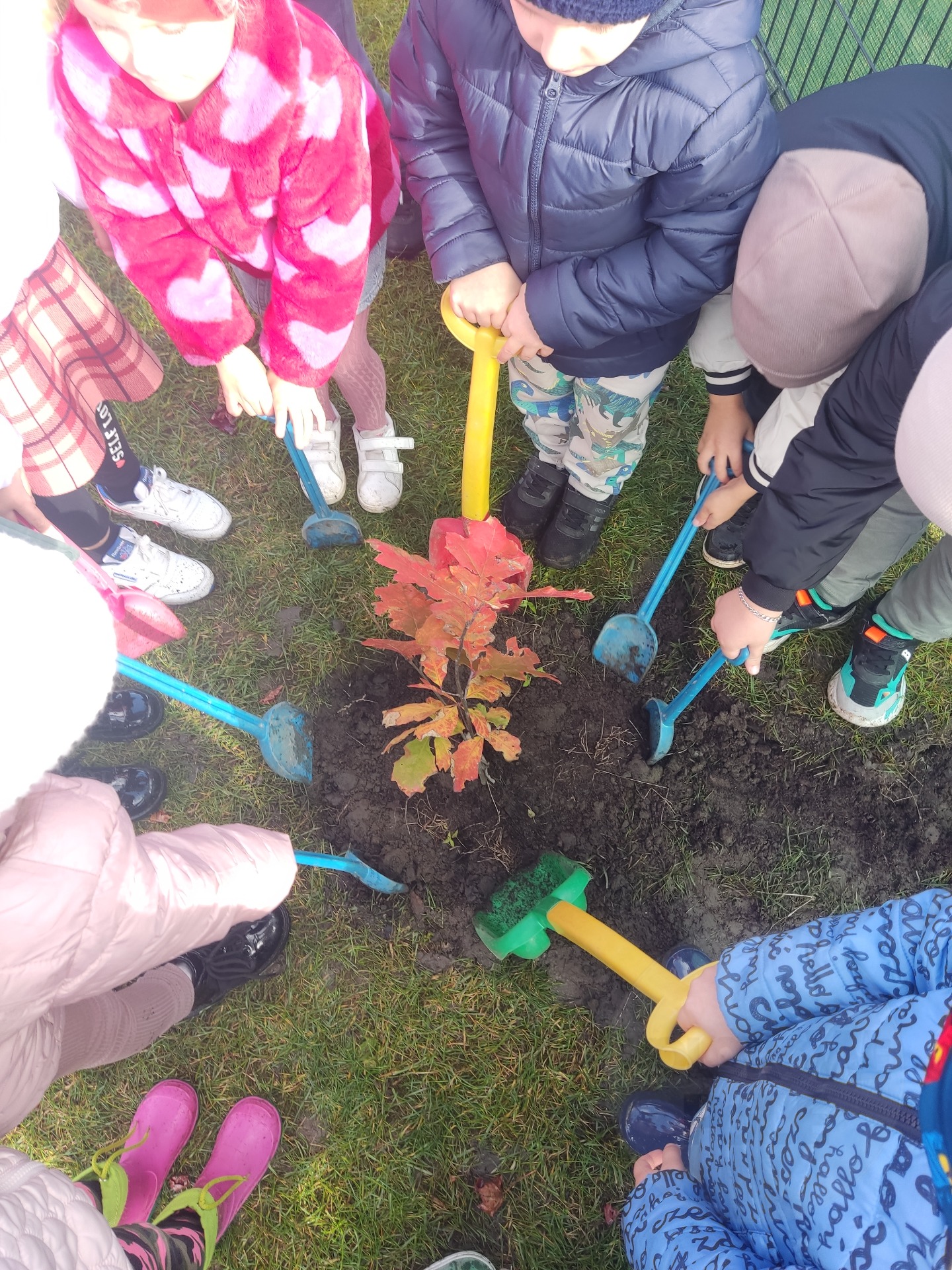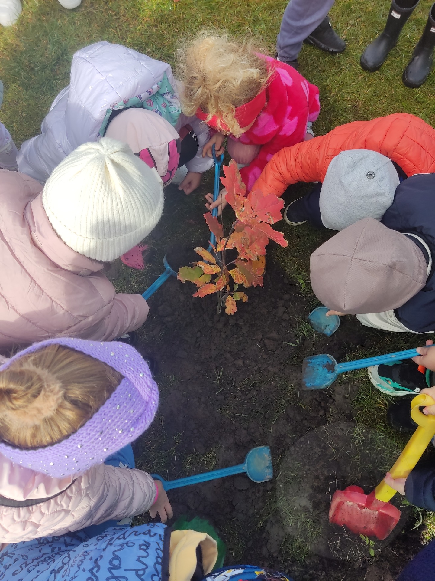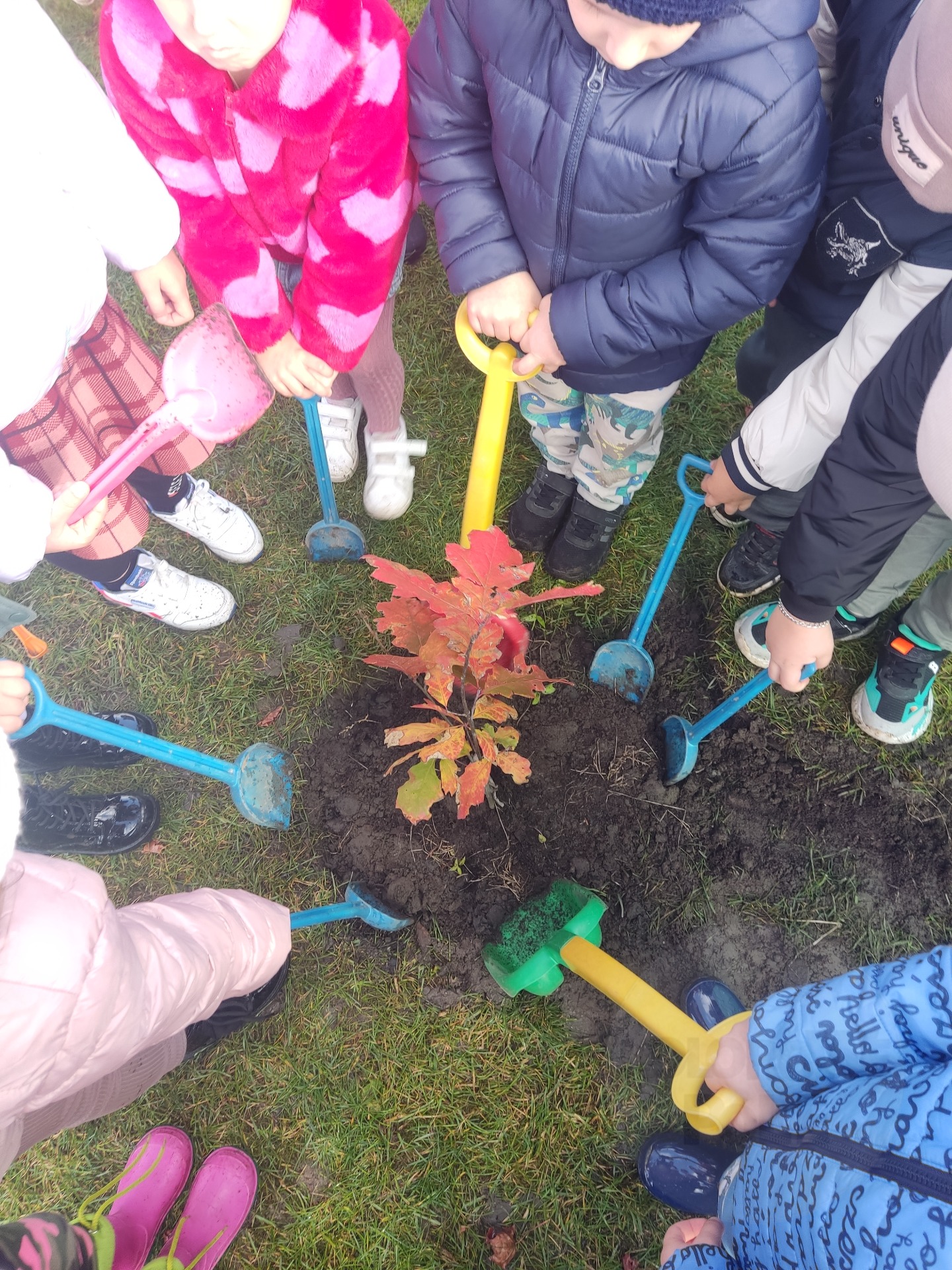 Nasze przedszkolaki zasadziły w tym dniu kolejne drzewo- dąb, który da nam cień w słoneczne dni;)